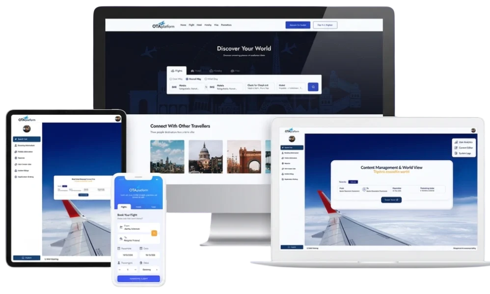 Our platform provides all the essential tools and resources needed to launch and manage your very own online travel business effortlessly. Whether you’re an experienced travel professional or a newcomer to the industry, OTA Platform equips you with everything you need to succeed.